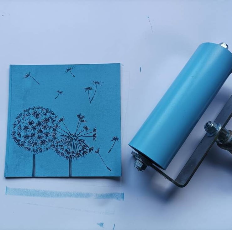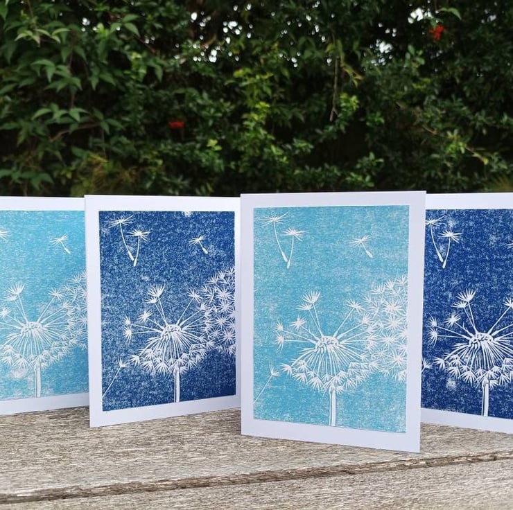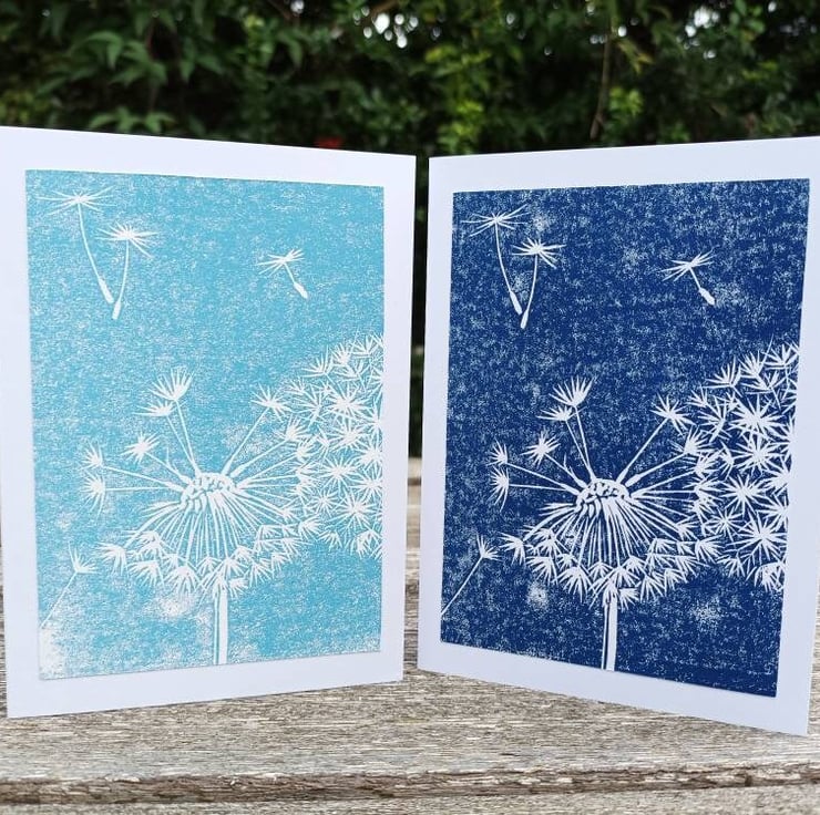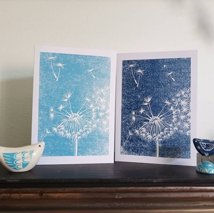 Each card is hand printed by me from an original linocut and there is one of each shade of blue.