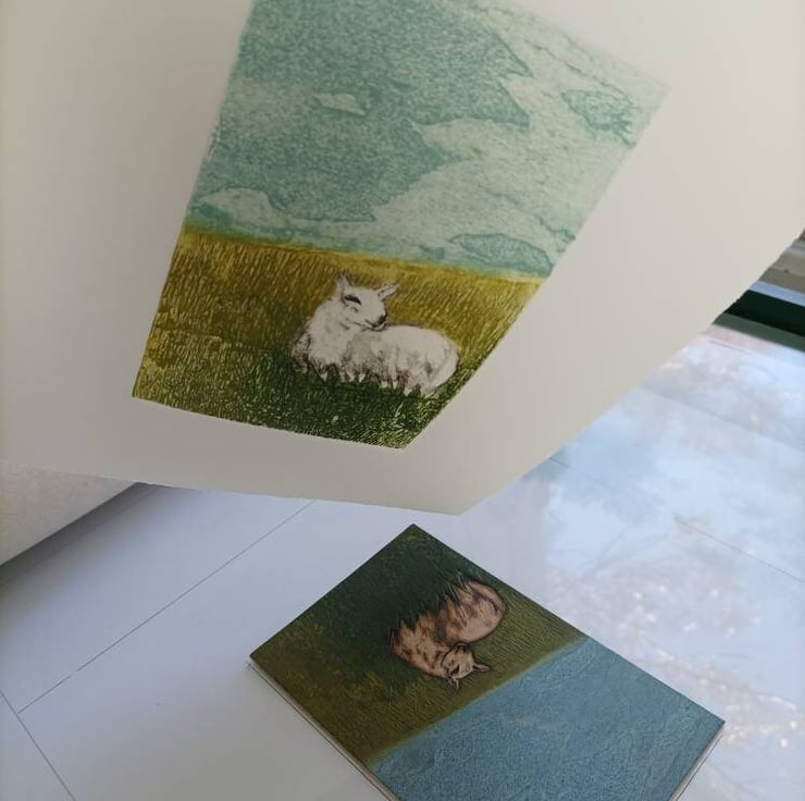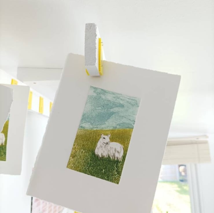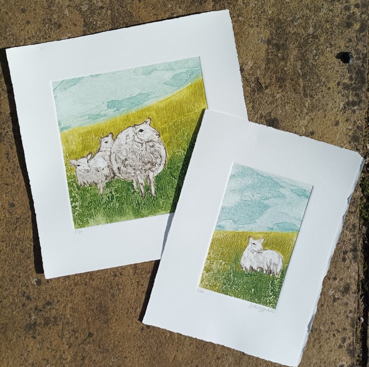 This print is a hand pulled Collagraph. Inspired by my trips to Skye and the many sheep on it!