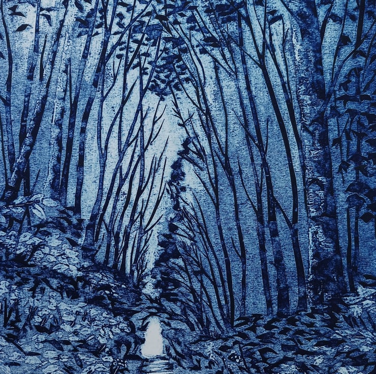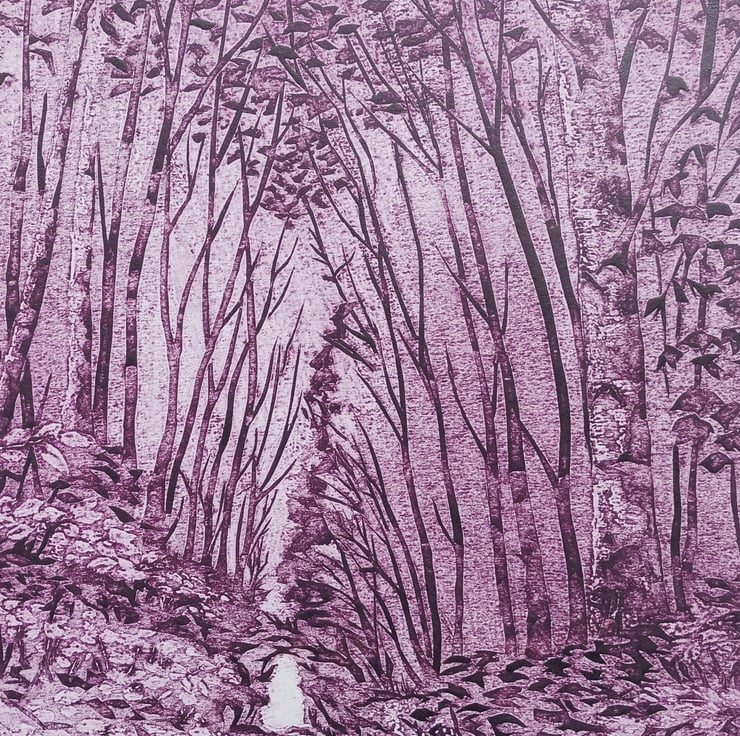 Cathedral of Trees is a hand printed Collagraph created after walking in woodland near Bredon, Worcestershire.