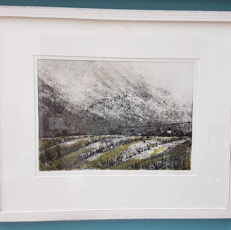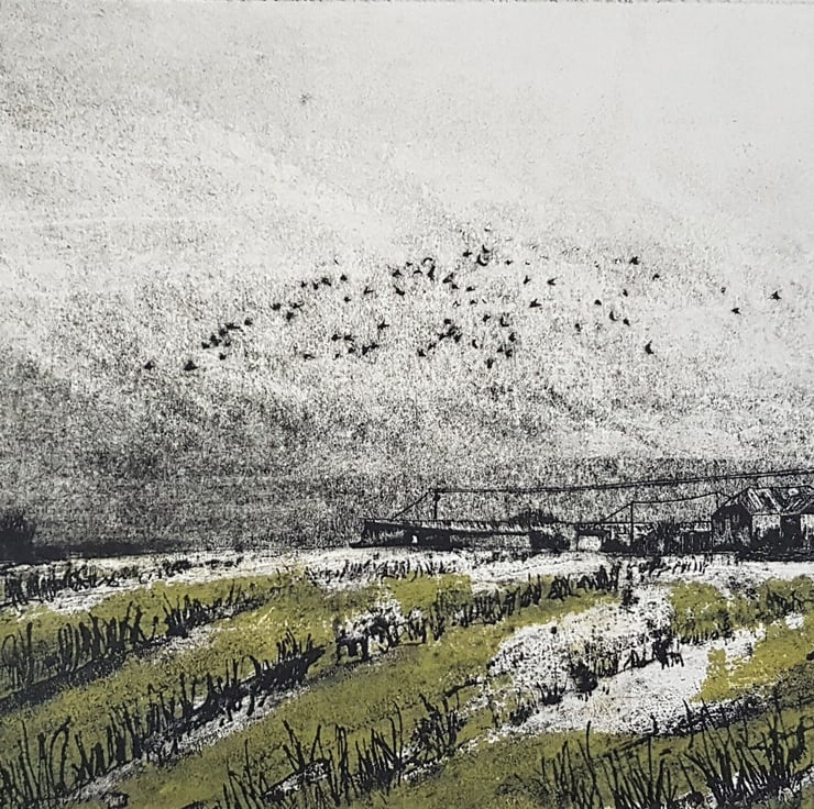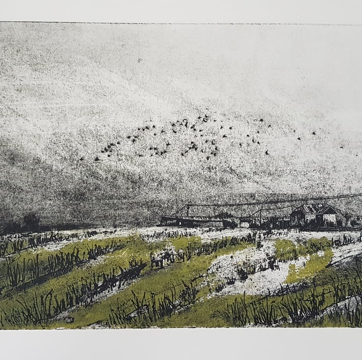 A hand printed Collagraph created from my drawings whilst walking in my local landscape.