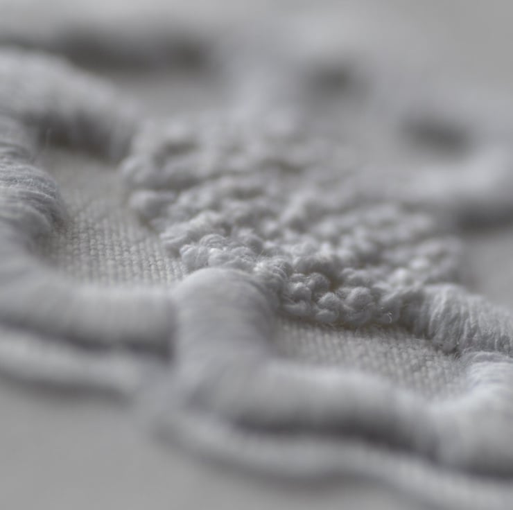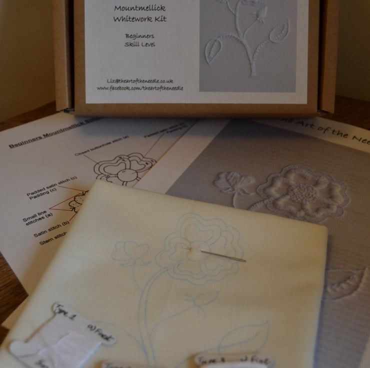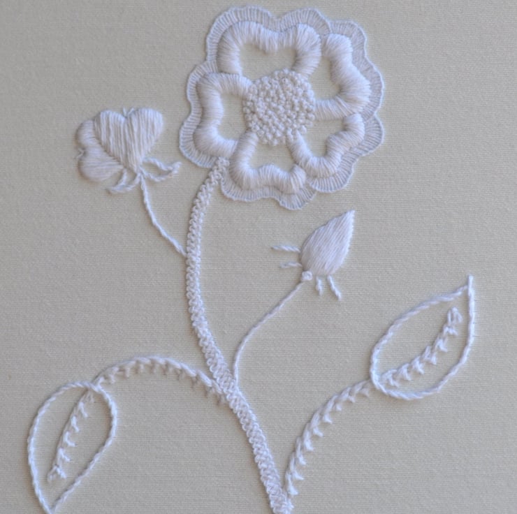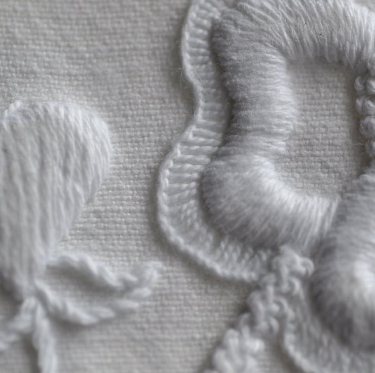 Mountmellick whitework embroidery originated in Mountmellick in Ireland. It is a beautiful textural raised technique, designed to be used and washed over and over again.