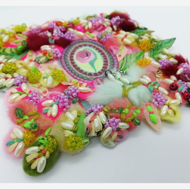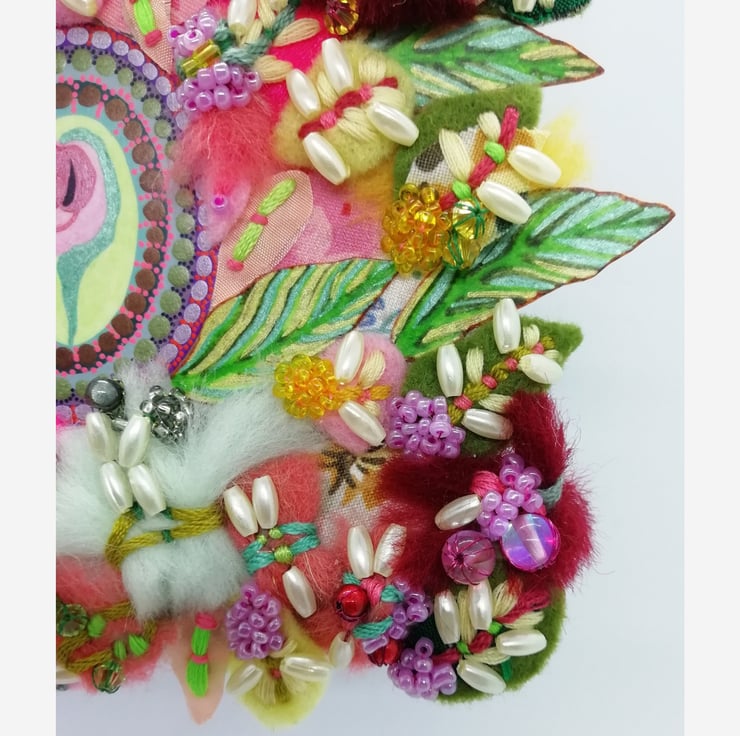 A delicate and very pretty little textile wall art that is looking for a home with an owner who is a fan of new beginnings. Perhaps you or someone you know is more than ready to wake up from a Winter-Esque slumber... if so, this might be the perfect little gift to celebrate a new start and put a spring in your step!