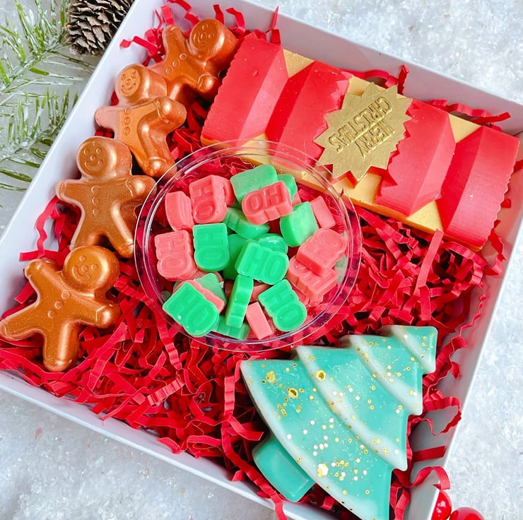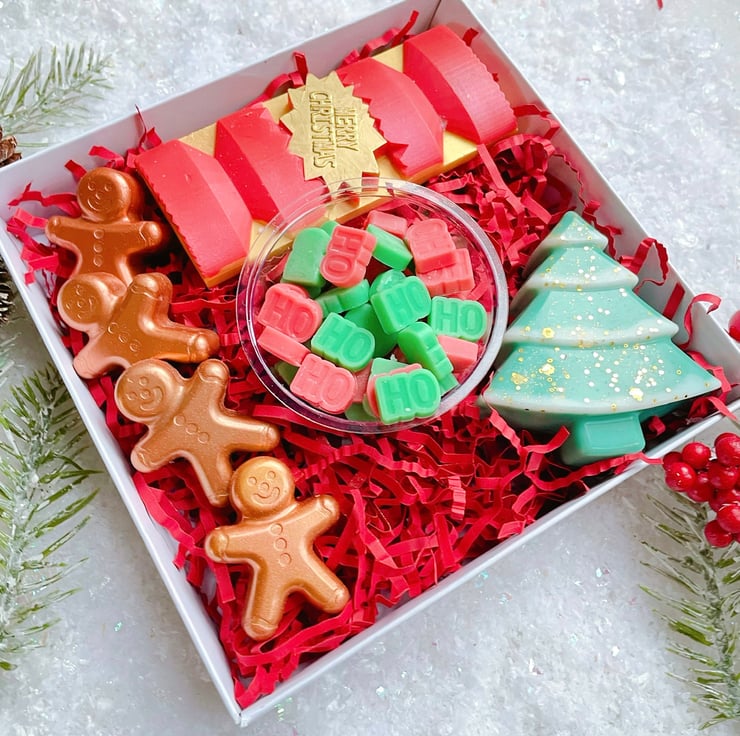 Our pretty christmas wax melt gift sets are lovingly handpoured in small batches using Rapeseed and Coconut Wax which is vegan and cruelty free, blending premium quality oils with our wax ensures that they are strongly scented and have a long lasting fragrance throw