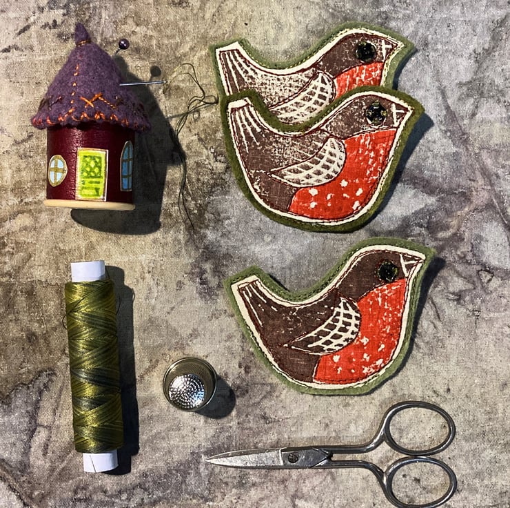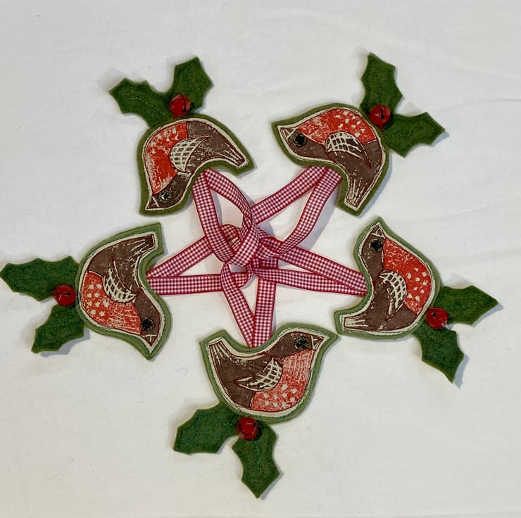Live a lino print and this little robin is a cheerful addition to and festive home. There is a brooch version as well.