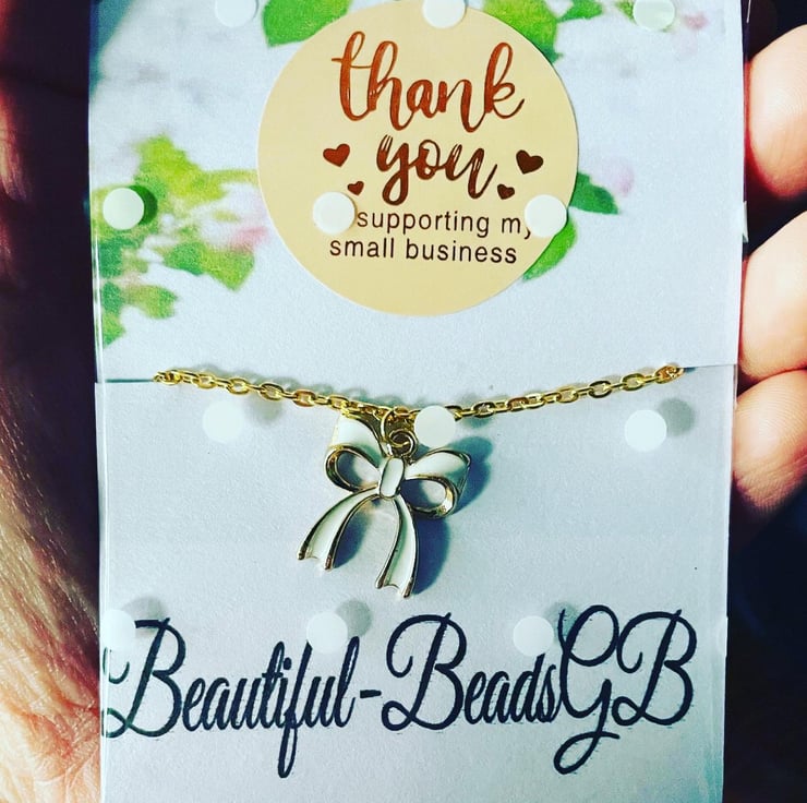 White ribbon pendant charm necklace