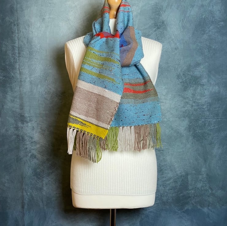 Woven by hand on my rigid heddle loom in my Suffolk home-studio, in a blend of premium acrylic. This unique oversize scarf is super soft, warm, durable and uniquely stylish.