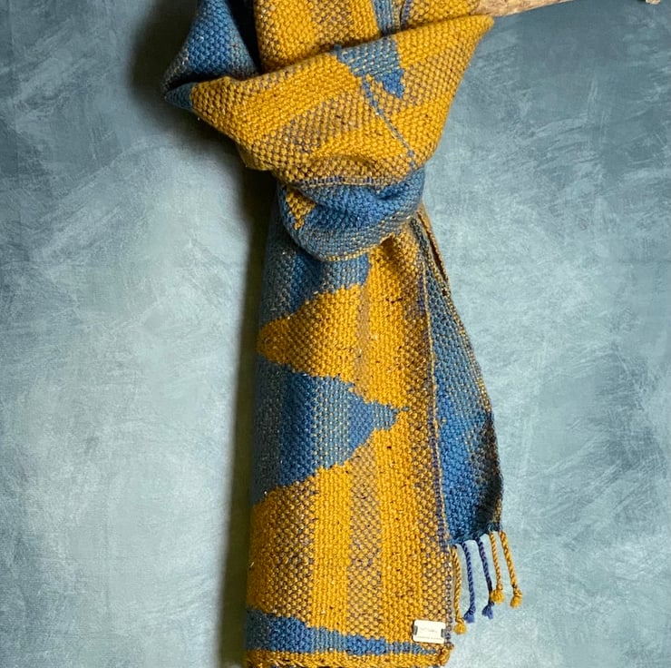 Woven by hand on my rigid heddle loom in my Suffolk home-studio, in a blend of premium acrylic. This unique oversize scarf is super soft, warm, durable and uniquely stylish.