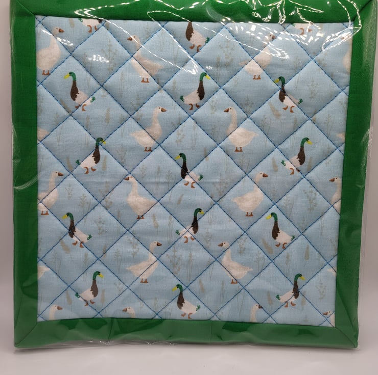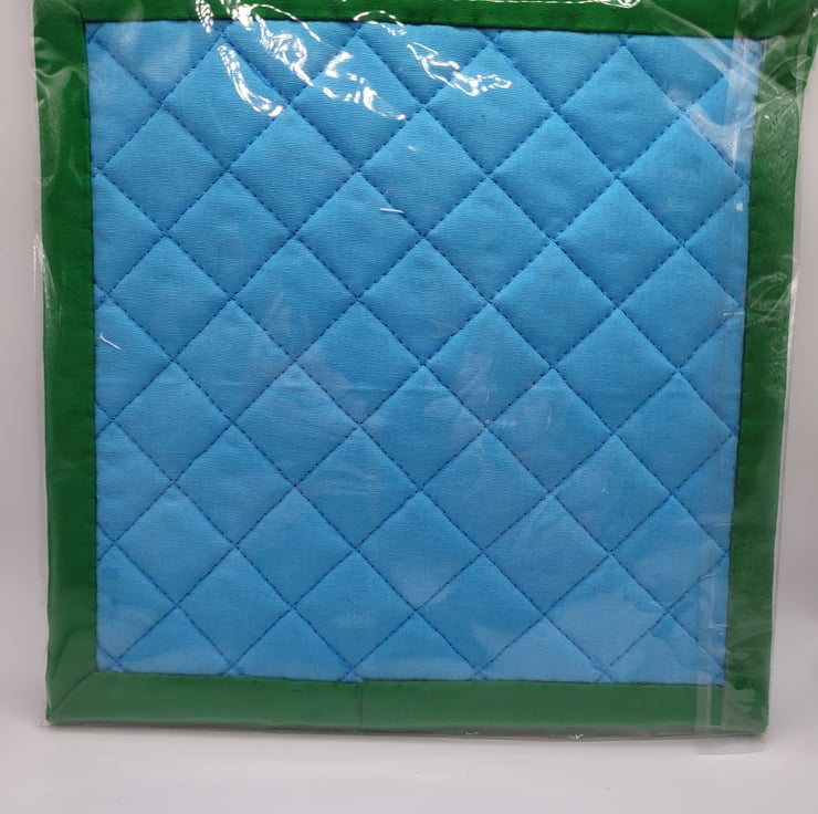 A lovely handmade cotton pot holder made using heat resistant wadding and quilted.