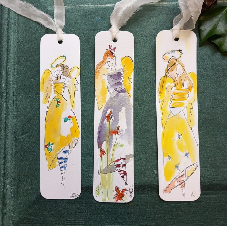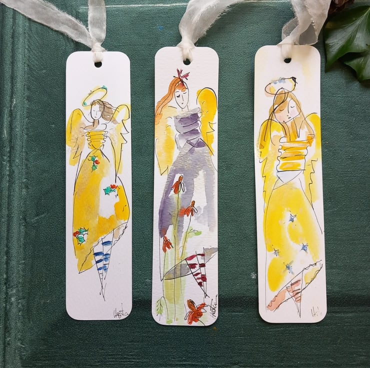 Three Original drawings on water colour paper in Indian ink and watercolours colour and silk ribbon. I also can offer them with names of your choosing .