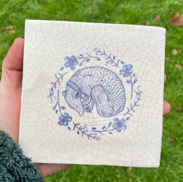 Handmade Decorative Ceramic Crackle Tile - Snooze club illustration