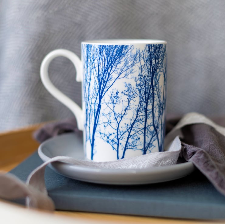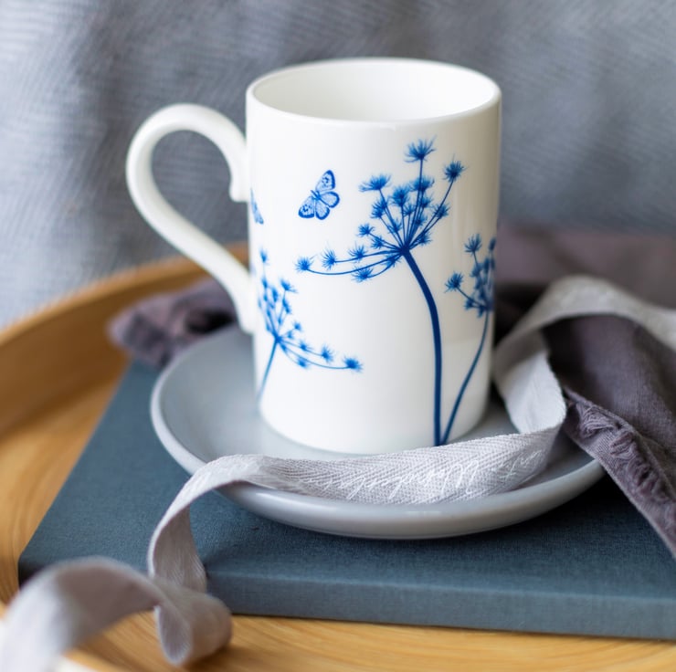 A special offer for any 2 of 'The Way to Blue' new large fine bone china mug designs for £31.