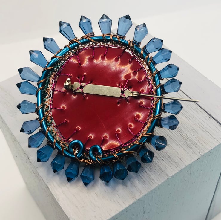 It is a large brooch but could be worn as a pendant by threading onto a chain through the pin. 5 cm diameter .