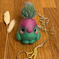 A magical one of a kind autumnal tree with bright glass eyes surrounded in hand stitched felt. This little tree has a metal wire frame making it possible to move the branches into place. Each branch is adorned with tiny hand cut and free motion embroidered felt leaves, all hand sewn into place. This tree measures roughly 13cm tall and 11cm wide. If you choose the hanger option I will attach a transparent wire loop. This is not a toy and meant for decorative purposes only. Sent in recyclable packaging.