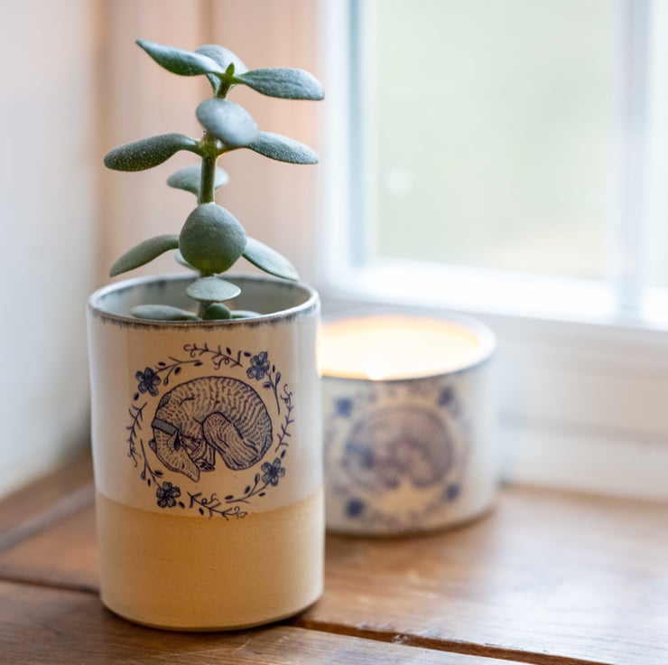 Original illustration from Ben at House of Hawks, it is fired a third time in my kiln to fuse the illustration robustly onto my pottery.