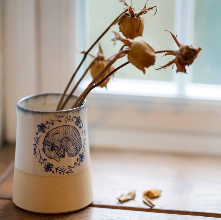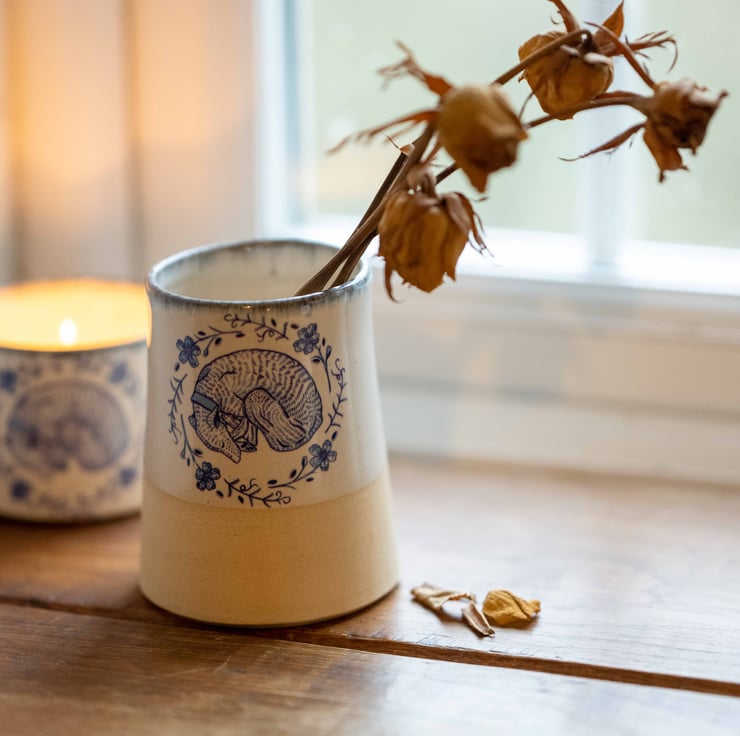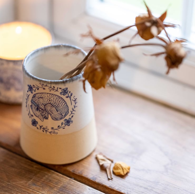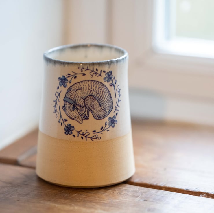 Original illustration from Ben at House of Hawks, it is fired a third time in my kiln to fuse the illustration robustly onto my pottery.