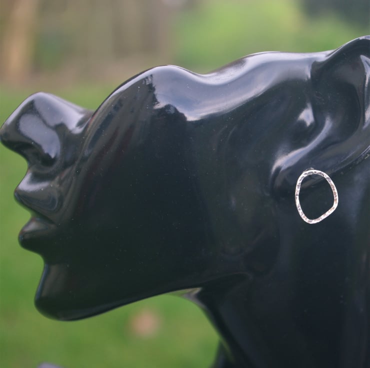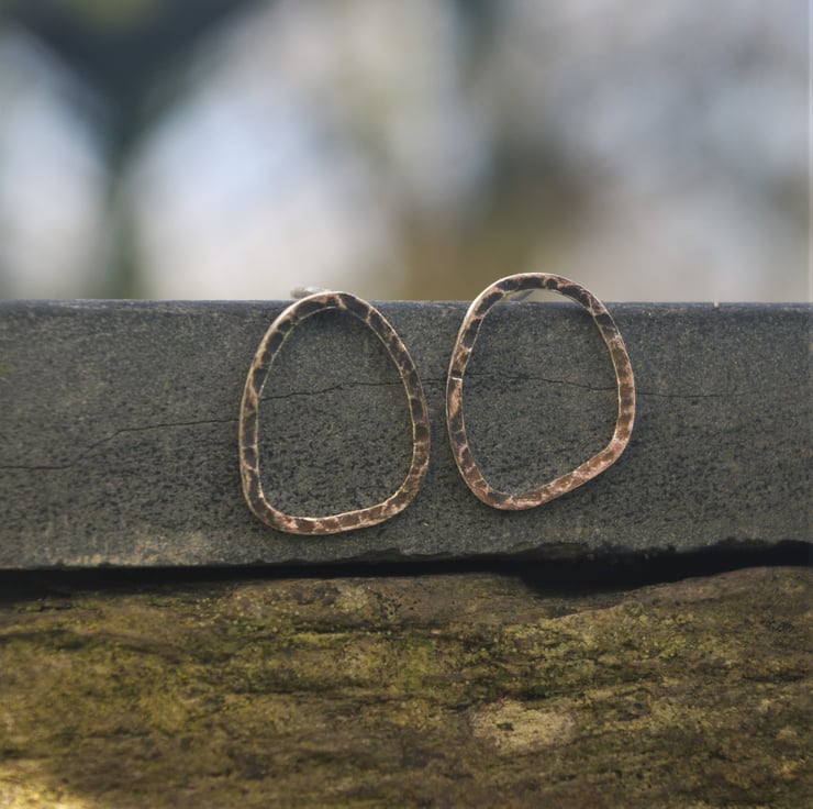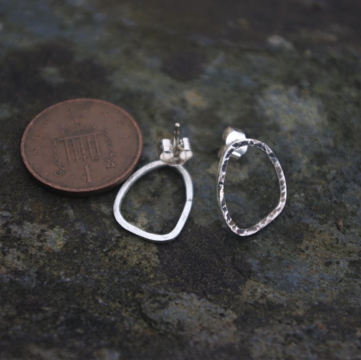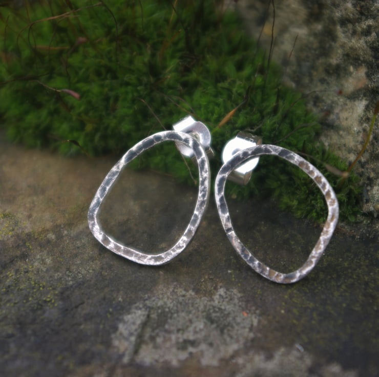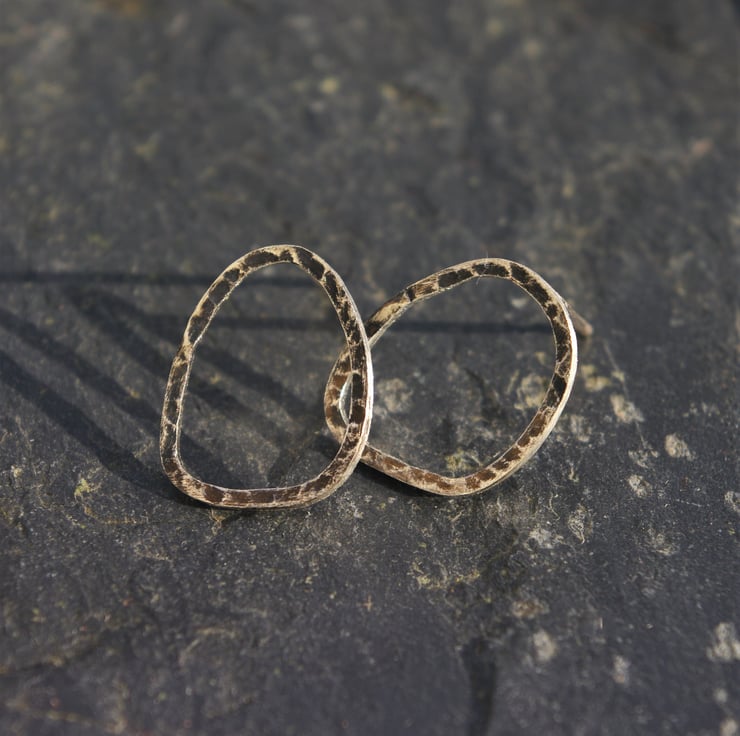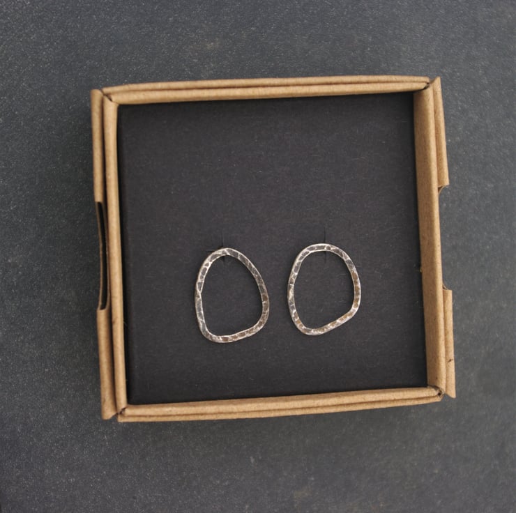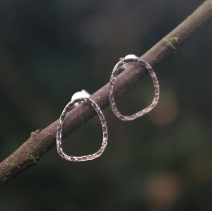 An organic oval shape, made with eco sterling silver square wire; with a textured surface which is brought out with slight oxidisation