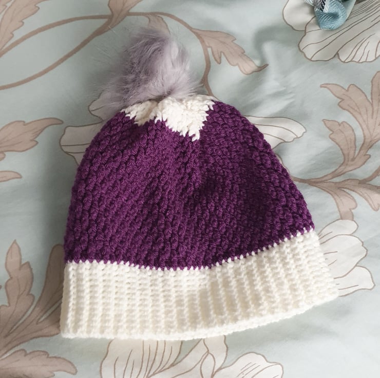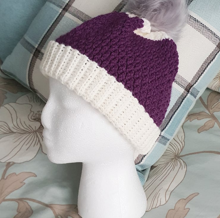 Adults Purple Crochet Aran hat, only one available in this colour and size, nice and thick to keep your head nice and warm.
