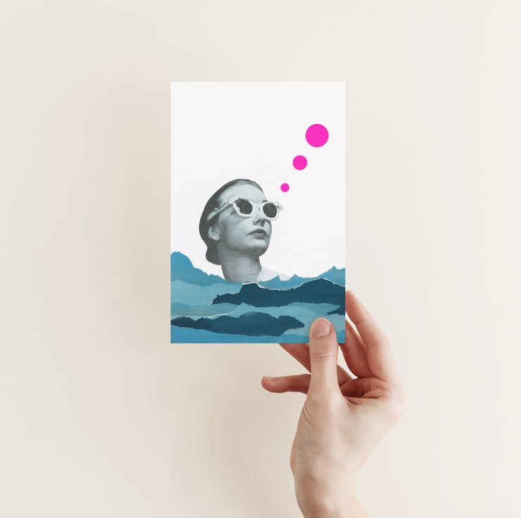 A summery coastal card that evokes pure happiness for those who love to be submerged in the water. Perfect for sea swimmers and river bathers.