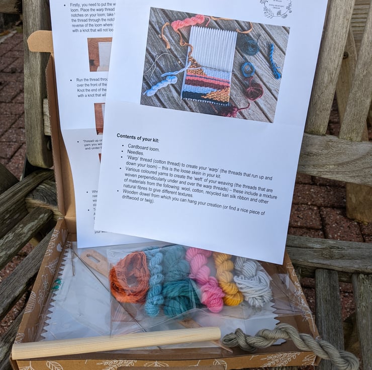 I love everything about weaving, from the initial choosing of colours and textures, and thinking about design, to the actual process of weaving fibres together to create a solid piece. I started helping others to weave wall hangings and this progressed to putting together beautiful kits for people to enjoy. I hope you like them!