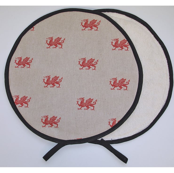 Each mat has three layers - Facing cotton fabric, a layer of padding and a layer of towelling - Making it also suitable for mopping up and pot-grabbing!