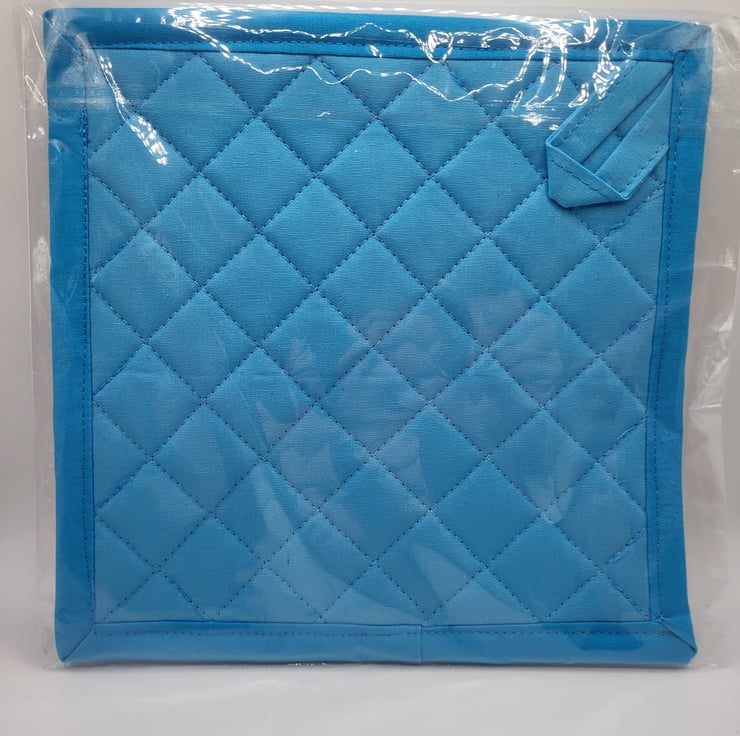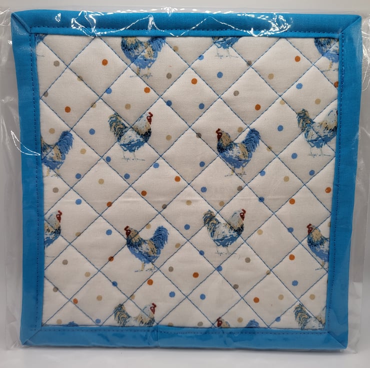 A lovely handmade cotton pot holder made using heat resistant wadding and quilted.