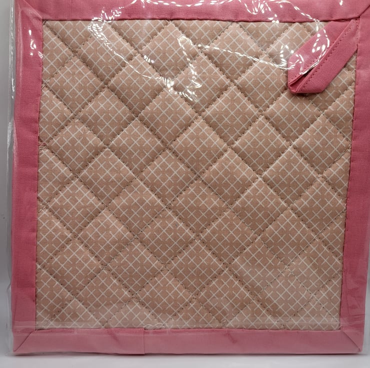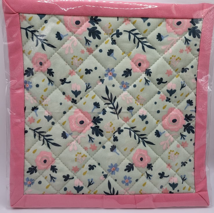 A lovely handmade cotton pot holder made using heat resistant wadding and quilted.