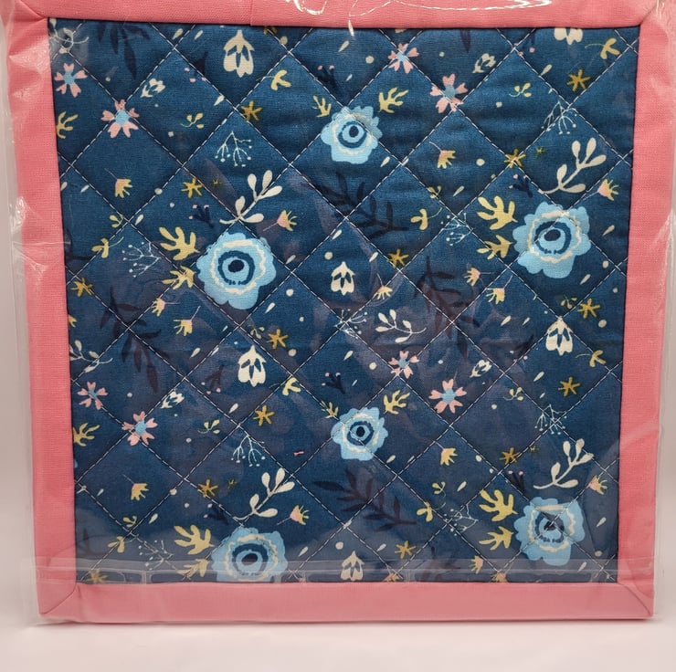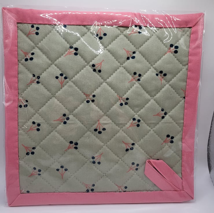 A lovely handmade cotton pot holder made using heat resistant wadding and quilted.