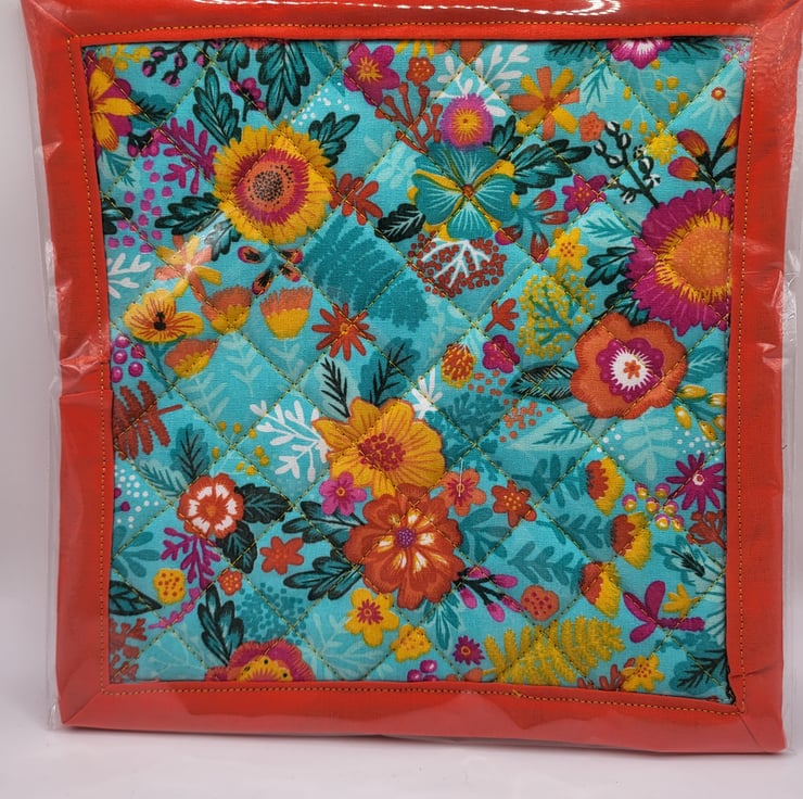 A lovely handmade cotton pot holder made using heat resistant wadding and quilted.