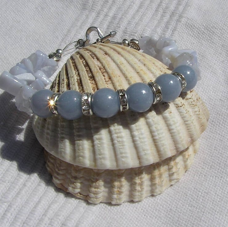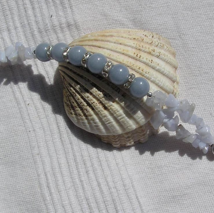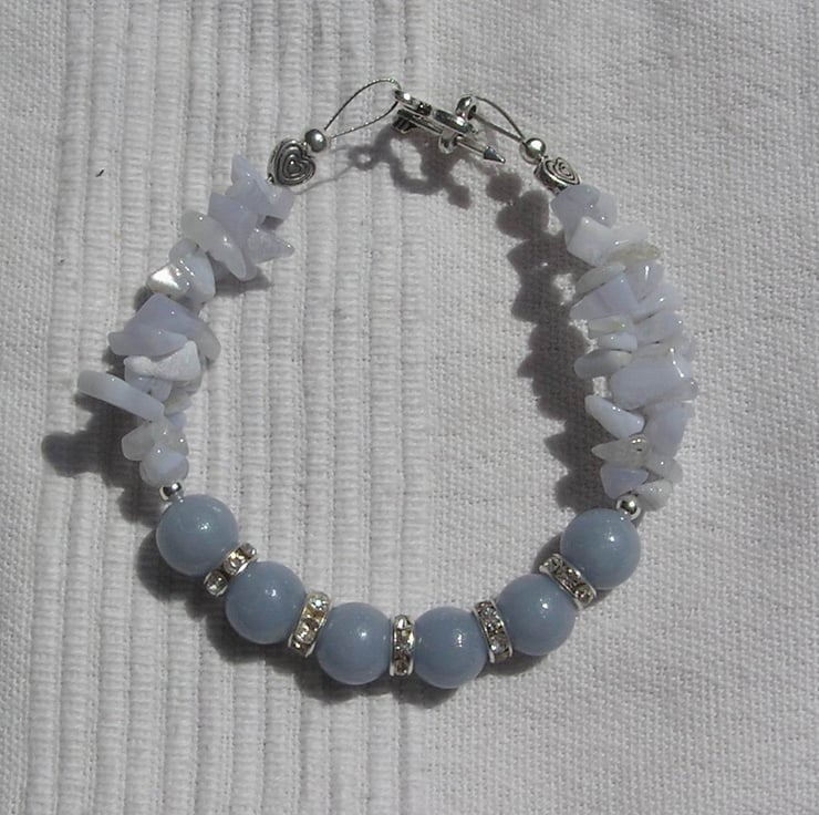 Angelite & Blue Lace Agate Crystal Gemstone Bracelet