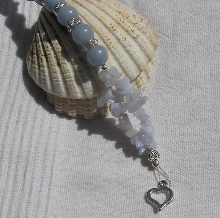 Angelite is a Stone of Awareness, Peacefulness & Tranquility whilst Blue Lace Agate is a Calming Crystal closely associated with the Throat Chakra