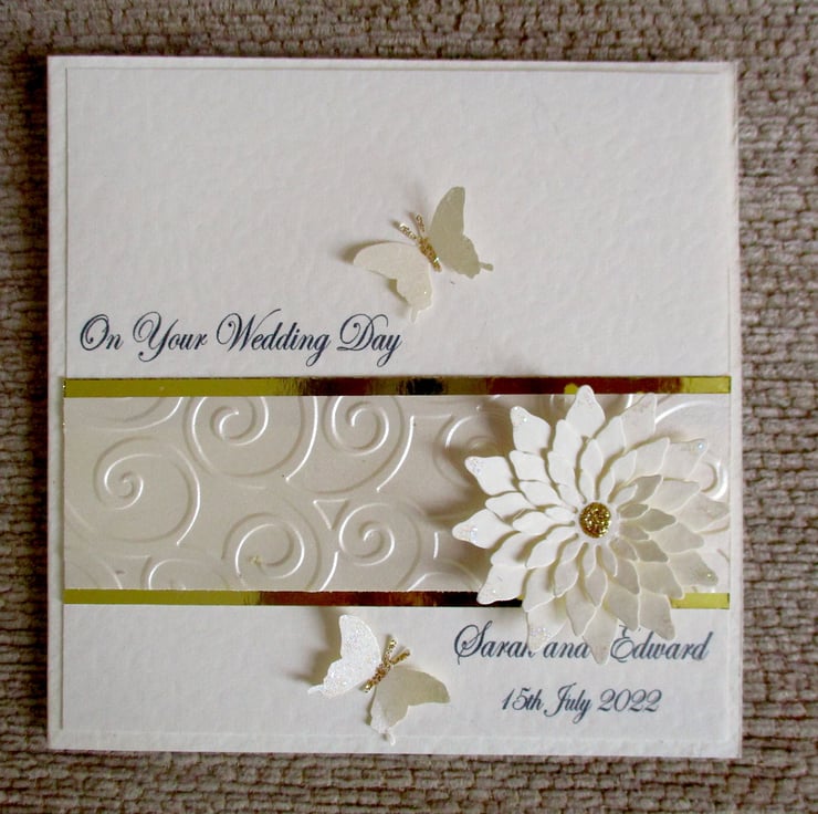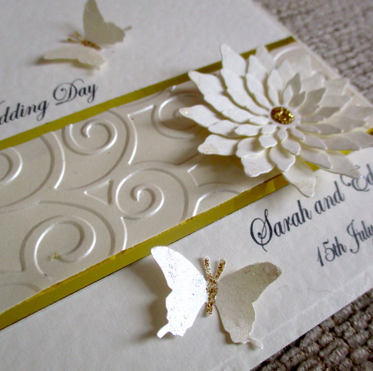 Elegant personalised flower and butterfly wedding card with a little bit of sparkle.