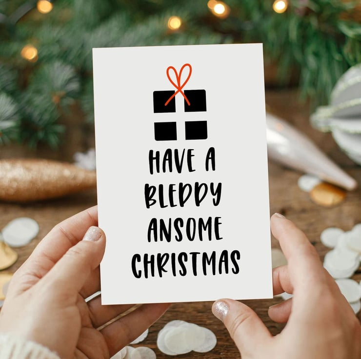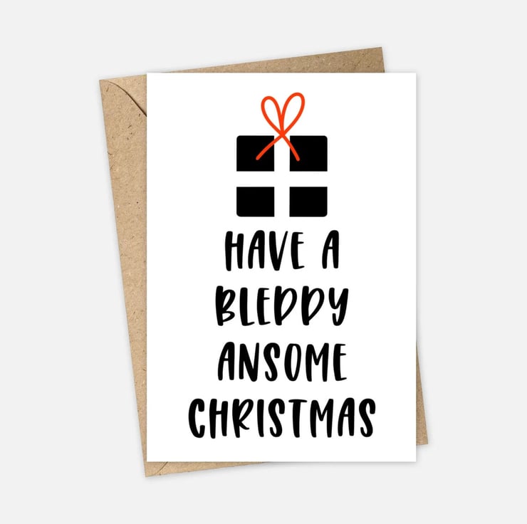 This lovely A6 card is from my original illustration featuring the words Have a Bleddy Ansome Christmas.