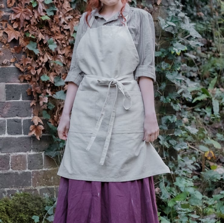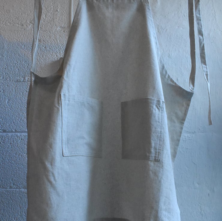 Simple worker's apron with adjustable tie back and neck and two good sized pockets for your tools!