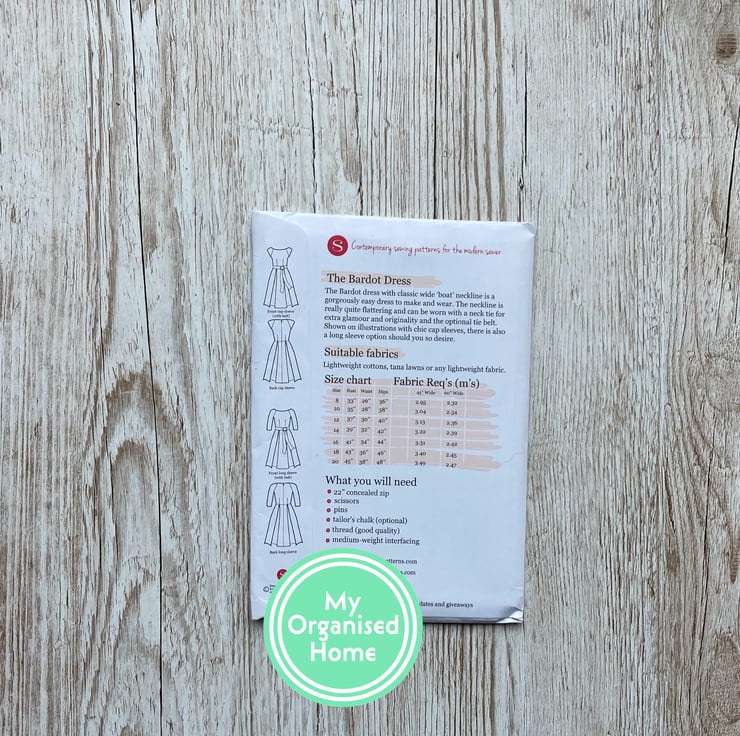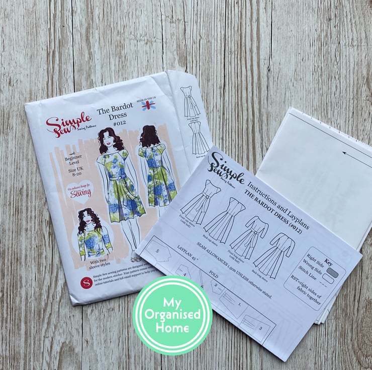 Simple Sew 012 Bardot Dress sewing pattern for misses, sizes 8-20.