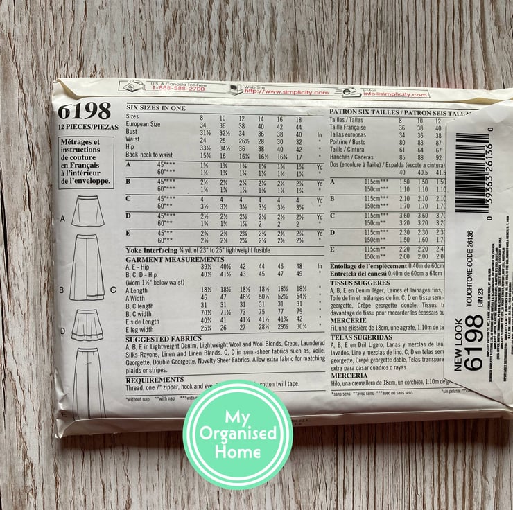 New Look 6198 sewing pattern for misses skirts and trousers, sizes 8 - 18.
