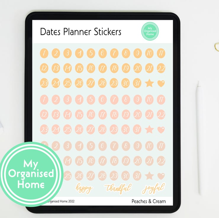 This is a set of 103 individual digital stickers in the Peaches & Cream colourway for use with digital planners. The digital download includes a PNG file for each sticker element supplied in a zip folder as well as a complete PNG showing all the stickers, a set of instructions in PDF format and a GoodNotes Elements sticker file containing cropped stickers for instant use.