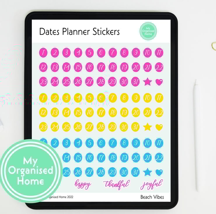 There are three colours of dated digital stickers for every day of the month, as well as six bonus stickers (two in each of the three colourways) and four phrases.