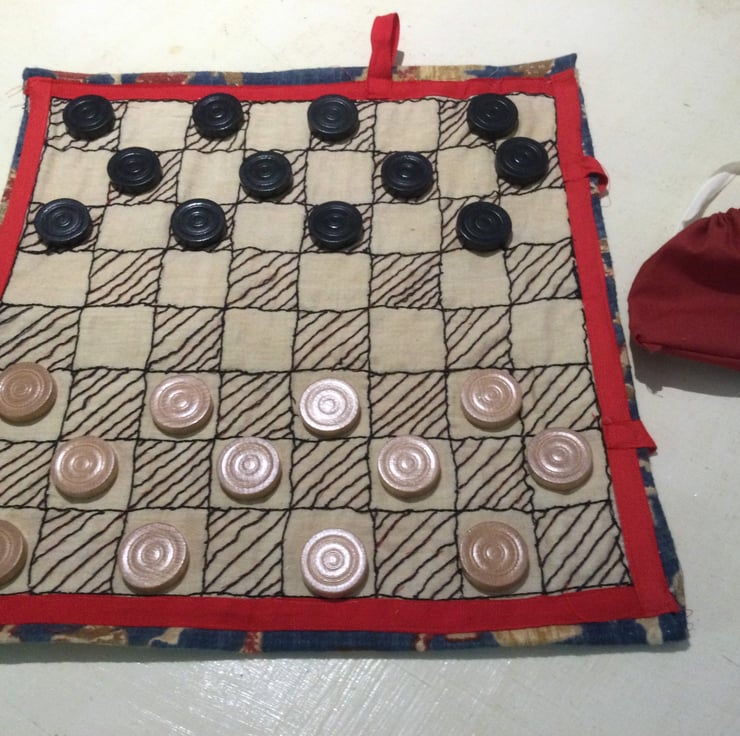 Should you wish to personalise this draught game , I cam embroider a name on the bag. I would charge 5 extra for this.