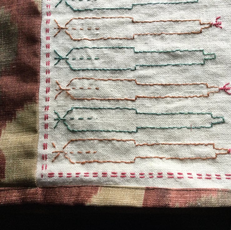 This is a beautiful Lewis and Wood design with spire- like shapes. These remind me of a backgammon board. I lived in Greece for a while and collected traditional embroidery patterns. I also frequently saw people playing ‘tavali’.