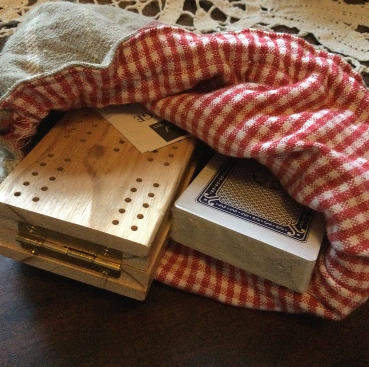 Loved the robust linen fabric and colour combination; matched the colours and texture of the cribbage game.