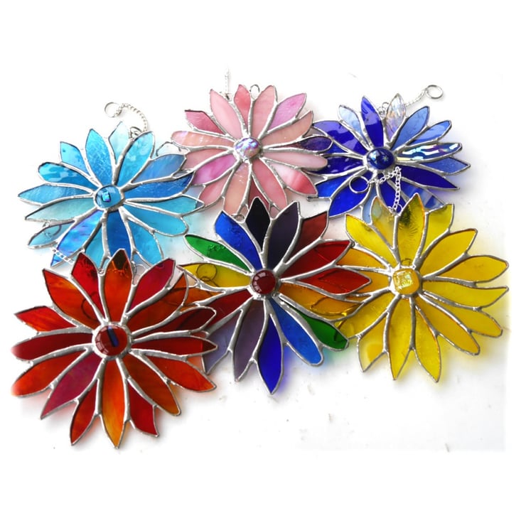 A silver coloured little chain is securely attached by solder to the top of the Flower with a little ring to hang it.