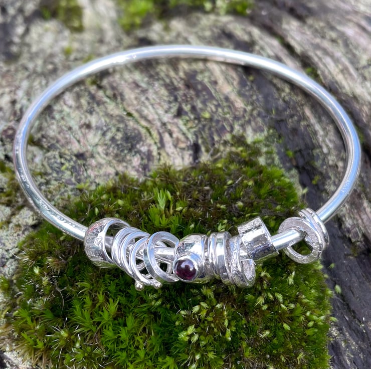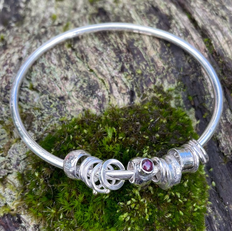 The bangle and beads have been burnished to a bright finish.