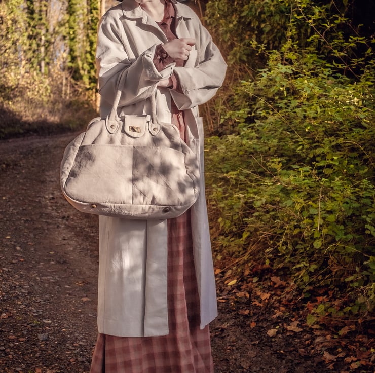 I love making Gladstone bags and I wanted to create something that retained a historical feel but was at the same time kind to the environment. This bag is soft in rigidity, as I was unable to find a completely eco friendly stiff interlining, but it's a small price to pay and I love it's soft appearance.