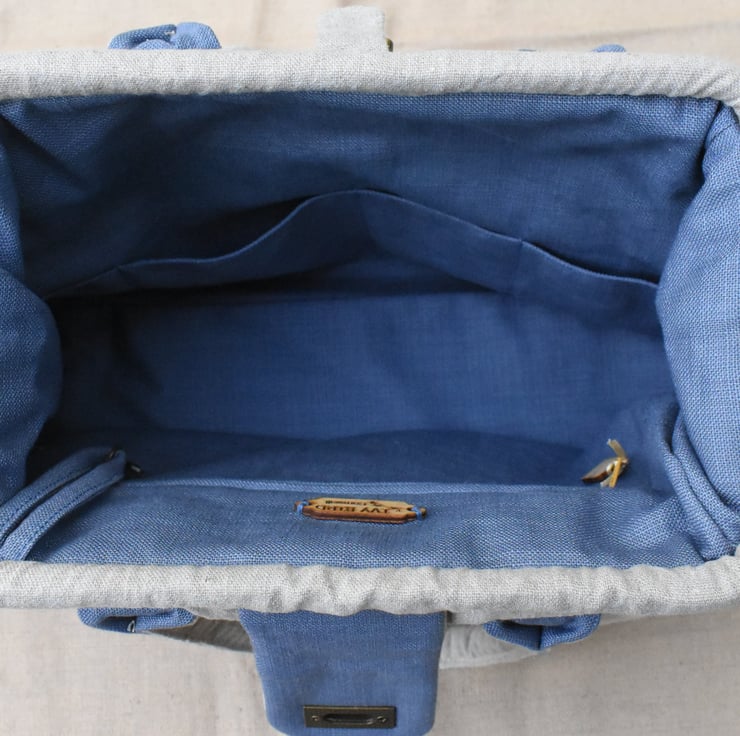 It is made using antique brass effect bag hardware and has a soft interlining for soft semi-rigidity.