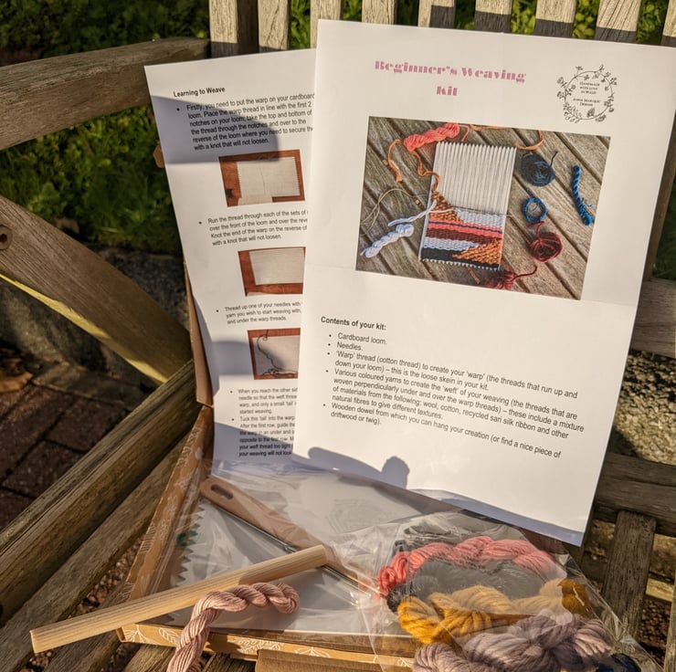 I love everything about weaving, from the initial choosing of colours and textures, and thinking about design, to the actual process of weaving fibres together to create a solid piece. I started helping others to weave wall hangings and this progressed to putting together beautiful kits for people to enjoy. I hope you like them!