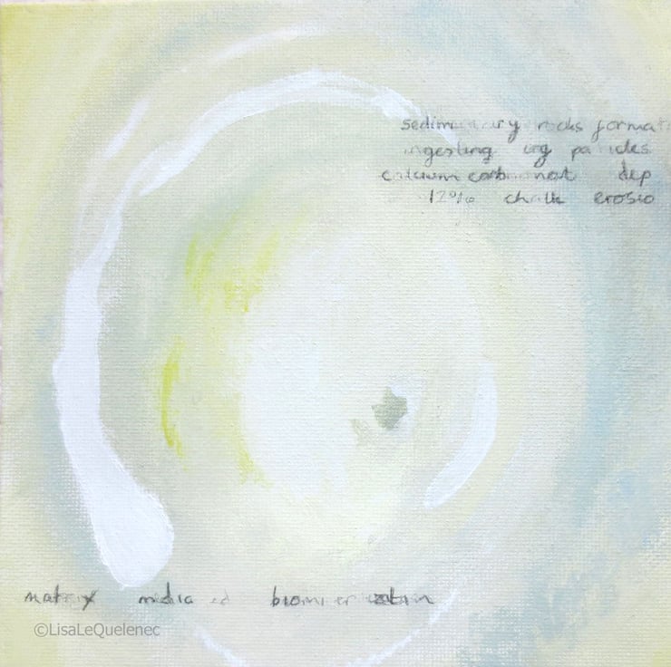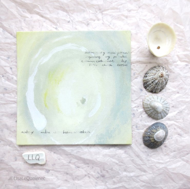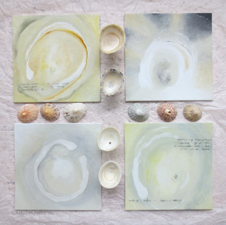 An original abstract painting inspired by organic shapes and a coastal neutral palette. Added text, partially hidden relating to its coastal inspiration is included on the paintings surface. This painting can stand alone or be hung in the company of others in the series as part of a collection.