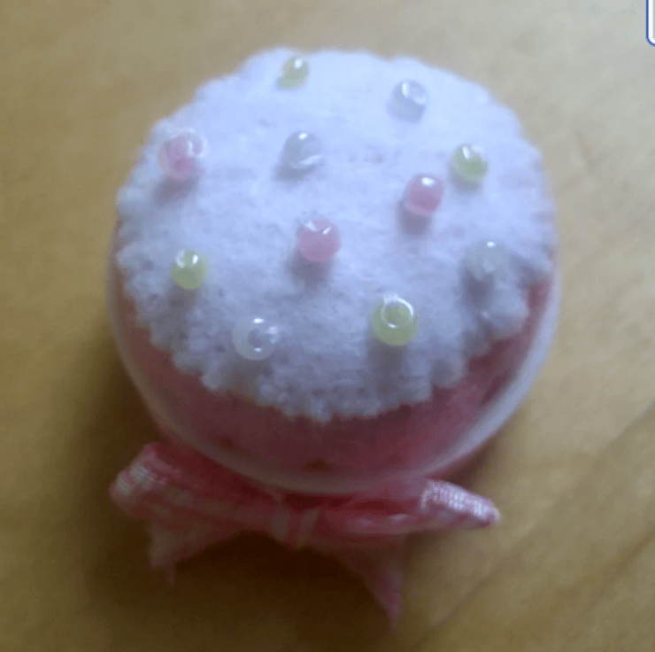Created for use as a pin cushion for sewers/crafters, as an ornament/decoration or as a doll house accessory.
