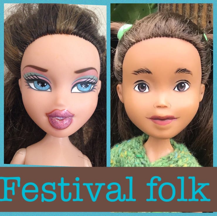 Lisa is a hand-painted make-under doll designed to encourage imaginative play. She was a second-hand bratz doll who has been given a new lease of life as a unique, age-appropriate Festival folk doll. Lisa has a soft long brown hair and brown eyes.