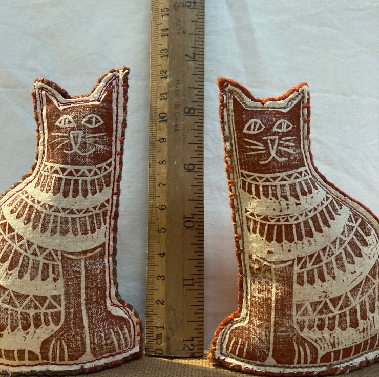 Printed on linen, and then mounted on wood felt so they stand up on their own - clever cat.