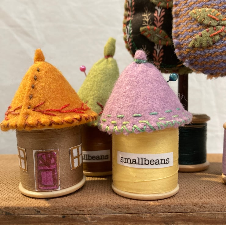 Very cute little pincushion made from a vintage cotton reel (of course!)